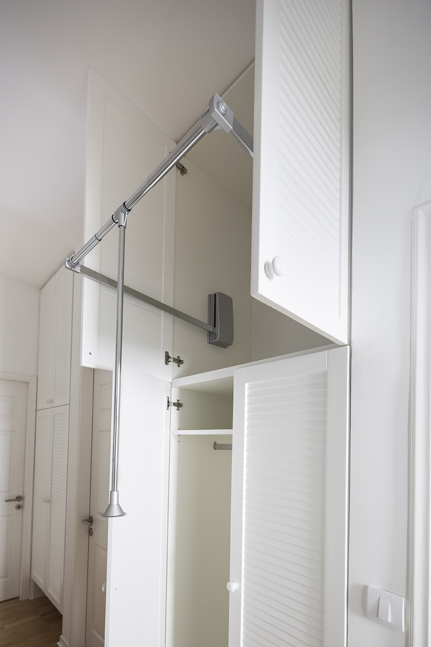 For full-height wardrobes, there are specific hardware fittings, such as a pull-down wardrobe lift system that can be installed to assist seniors in grabbing items that might be out of reach for them.